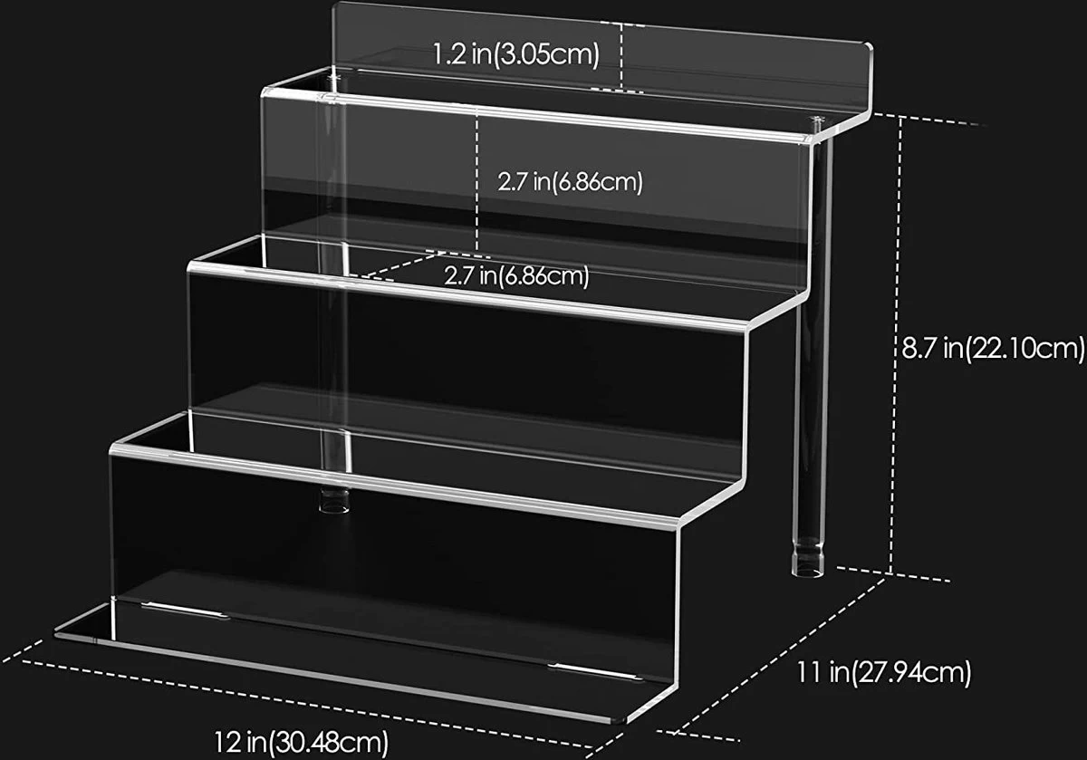 - Veelzijdig gebruik: deze transparante acryl-displaystandaard is perfect geschikt voor het presenteren van speelgoedfiguren in kasten of werkbladen, voor het verzamelen van borrelglazen, voor het vieren van feestdesserts en voor het presenteren van cosmetica en huidverzorgingsproducten op de commode. Hij kan ook worden gebruikt als kruidenstandaard voor het plaatsen van kruiden en kruiden. Je kunt deze trapsgewijze acrylstandaard thuis, op kantoor, op feestjes, in de winkel enz. gebruiken.