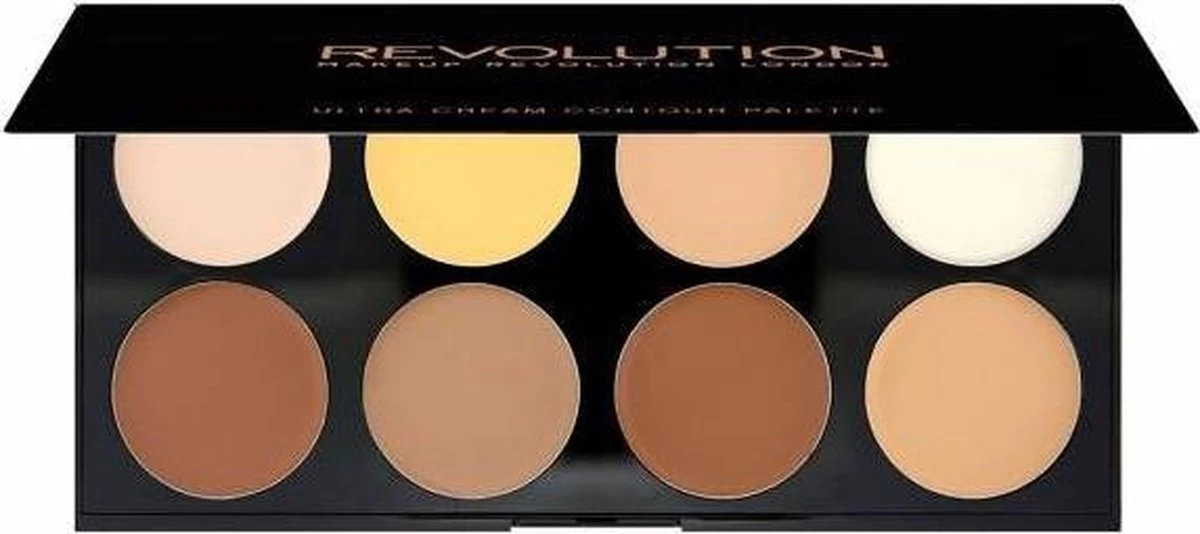 Het Ultra Cream Contour Palette van Makeup Revolution is een complete creamy contour kit om zowel te shapen als te highlighten. Onmisbaar in jouw stash, inclusief grote spiegel!