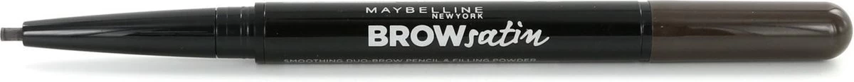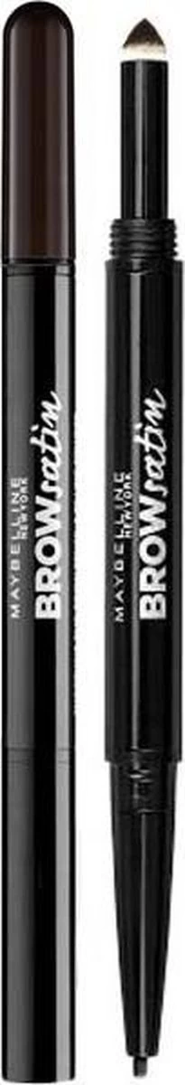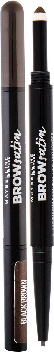 Maybelline New York Brow Satin Duo Wenkbrauwpotlood en Poeder 05 Black Brown vult zwart bruine wenkbrauwen op voor vol uitziende wenkbrauwen zonder kale plekjes.