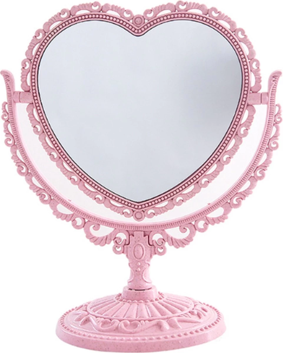 Merkloos Makeup Spiegel – Dubbelzijdig – Luxe – Draagbaar – Reis Make-up Spiegel – Roze