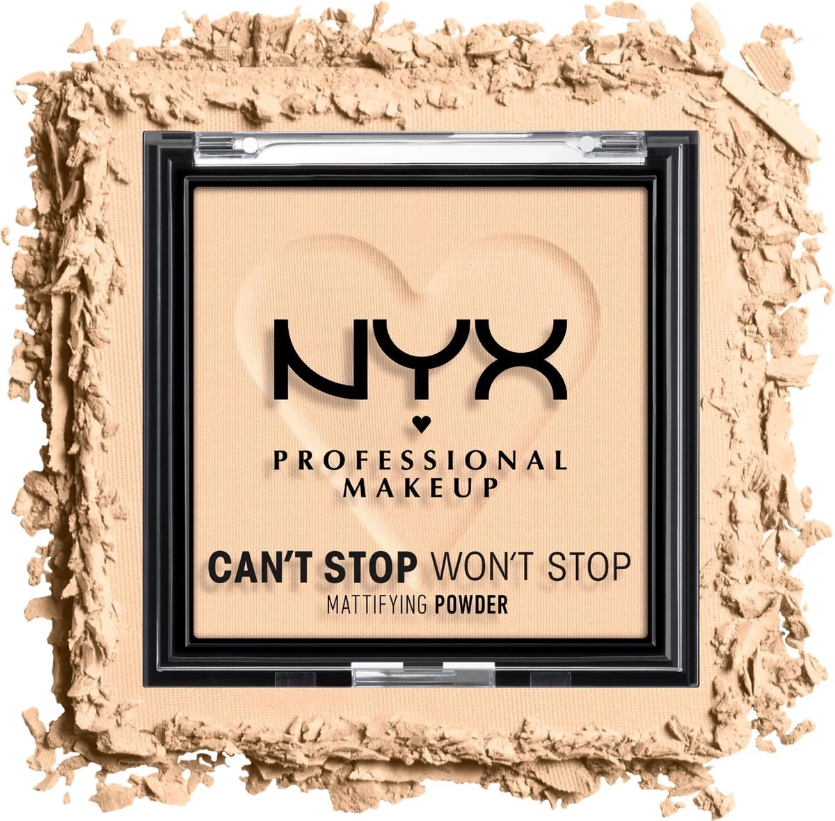 De Can’t Stop Won’t Stop matterende poeder laat de huid er onmiddellijk ultra-mat uitzien en minimaliseert het verschijnen van olie en glans. Deze lichtgewicht formule biedt de hele dag een gladde, matte finish zonder er droog, cakeachtig of ashy uit te zien voor een perfecte huid. De translucent maar opbouwbare tinten zijn makkelijk te blenden zonder in fijne lijntjes te nestelen voor een gelijkmatige, gladde afwerking. Dit matterende poeder vertraagt make-up slijtage en geeft een matte afwerking van foundation zonder af te geven. Dit poeder minimaliseert het uiterlijk van olie en glans de hele dag voor een ultra-matte finish die de hele dag niet hoeft te worden bijgewerkt.
