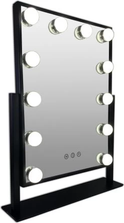 Zwarte Make-up Hollywood LED Spiegel, 12x Dimbare LED Bulbs. 3 Kleuren Licht