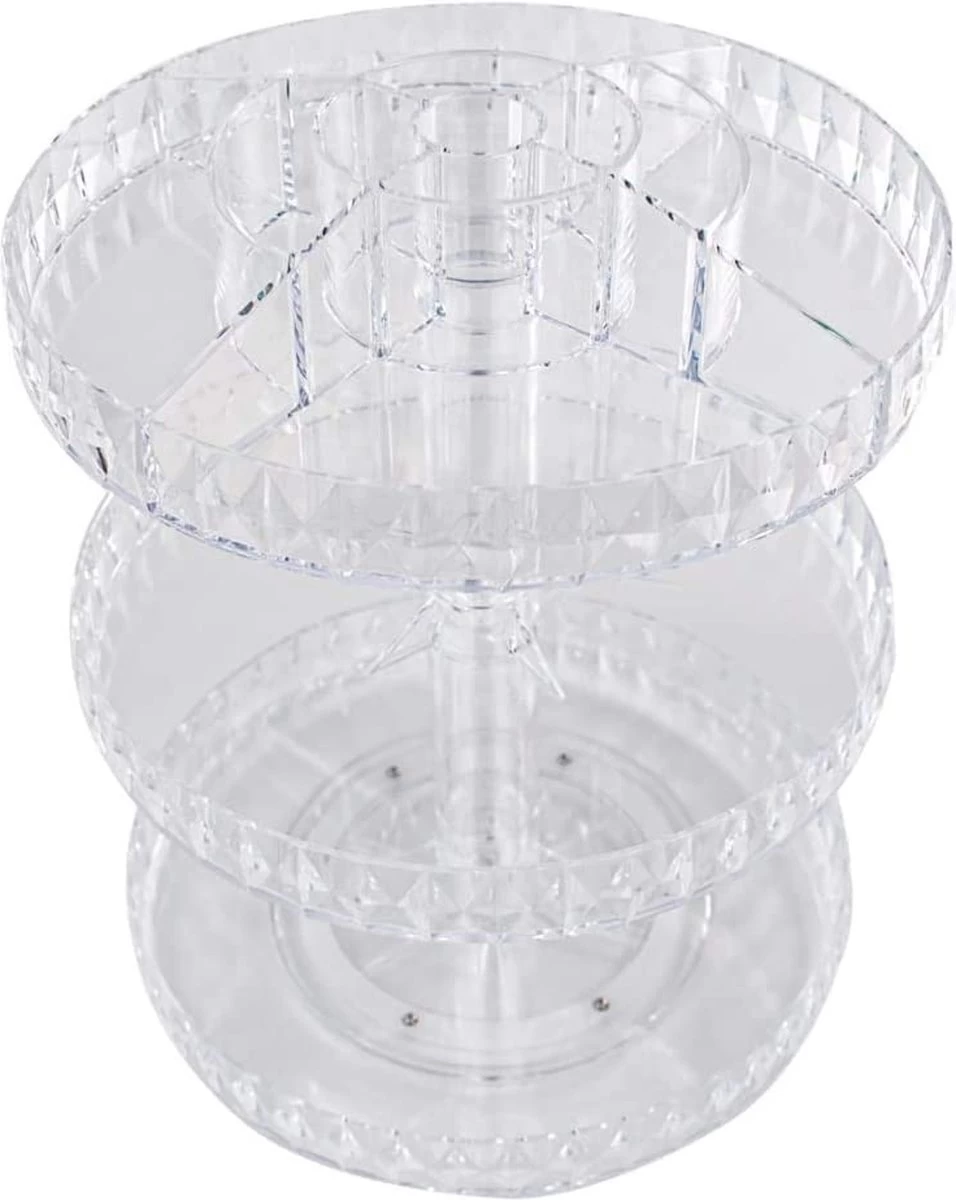 TRIXES Make Up Organizer – 360 Graden Cosmetica-organizer – 3-laags, Heldere Acrylstandaard – Draaibaar Display Met Kristallen Design – Voor Shampoo, Conditioner, Parfum, Lippenstift En Nog Veel Meer